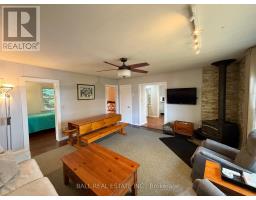Charming Chandos Lake Cottage! 210ft of prime waterfront with rippling sandy beach frontage that wades into deep, clean water for great swimming, fishing and boating. 1.124 acres of wooded privacy with cottage and dry boathouse tucked in the trees near the water's edge for ultimate privacy. This adorable cottage offers 3 bedrooms and 2 full bathrooms, including a 3-piece ensuite in the primary bedroom, plus a screened-in porch and a cozy woodstove in the open-concept, lakeview living room. Watch the sunrise off the dock & lakeside decks, and watch the sunset light up the lake from your private wooded point along the peninsula of South Bay. Excellent privacy off the long, wooded driveway set on a year-round municipally maintained road with curbside collection, just 15 mins to amenities of Apsley. Enjoy true cottage serenity on Chandos Lake! (id:50886)