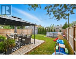 Pristine 970 +/- sq.ft. 3 bedroom, 2 bath raised bungalow on quiet street. Large sun drenched living room with bow window, good size dining area. Kitchen with plenty pf cupboards (appliances included) Original dining room doubles as side entry with access to the backyard. 3 good size bedrooms up and nicely redone 4pc bathroom. Finished rec room with electric fireplace, plus finished play area, games room 23'5" X 13'7" ("L" shaped) Kitchenette removed (hood fan capped off in ceiling) 3pc bathroom. 2 large storage rooms. Basement would make a great in law suite. Backyard with newly built wood privacy fence. Large patio with gazebo, above ground pool and shed complete this summer oasis. You wont' be disappointed! Close to schools, shopping and bus route. Call today for private viewing. (id:50886)