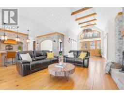 Lake Life at it's finest! Check out this amazing 4 bedroom, 5 bath home on the South shore of Moira Lake with over 4800 sq ft of finished living space. Unobstructed views, immaculate landscaping, and your own boat launch, make this spectacular property one that dreams are made of! A paved circle drive leads to the triple garage finished with an epoxy floor, plus down to the bonus lower garage and right to the lake. Smart home technology throughout both levels is an added bonus! An entrance way with stone pillars invites you into the foyer with vaulted ceiling and into the great room, with amazing views of the lake. Beautiful wide plank flooring throughout both levels brings a level of sophistication. A custom stone wood fireplace is the center piece of the open concept K/LR area and is finished with matching stonework and features a large center island - a great area for entertaining. A spacious formal dining room is a big plus and has an office area in case there is work to be done. 2 bedrooms up including a master bedroom with a private deck, an amazing 5 pc ensuite bath with a soaker tub and walk-in shower. The basement boasts a large rec room with a propane fireplace, rough-in for a bar, a games room ready for a pool table or golf simulator, a theatre room, a 10x16 cold room, 2 bedrooms, 2 baths and a walkout to finished patio overlooking your pristine yard and waterfront. Professional landscaping complete with irrigation system and a unique firepit area with a stamped concrete finish at the water's edge, a stone wrapped island/bar fridge and lots of room around the campfire for late night story time. A new aluminum docking system which accesses a hard bottom shoreline and finished with an armor stone break wall and erosion proof riverstone. Lots of great boating and fishing on the lake and close to the Heritage Trail for ATV or snowmobile riding. This one has spared no expense and the attention to detail will be sure to impress. 2 hrs to Toronto or Ottawa. (id:50886)
