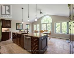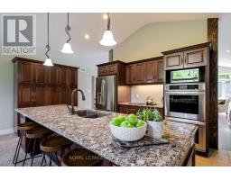 Multi-Generational Living offering excellent value on 3.9 acres! Experience exceptional design and comfort in this custom-built, 6 Bedroom, 4 Bath, all-brick executive bungalow, offering approximately 4,500 sq ft of beautifully finished living space. Thoughtfully designed with two fully self-contained levels, this home provides complete privacy and independence for multi-generational families or those seeking flexible living arrangements. The main floor features 3 spacious bedrooms and 2 bathrooms, including a serene primary suite with walk-in closet and 4-piece ensuite. Large windows throughout flood the home with natural light, highlighting the warm hardwood, stone and ceramic flooring. The living room is a showpiece, with a soaring cathedral ceiling and a dramatic floor-to-ceiling stone fireplace that adds both charm and character. The chefs kitchen boasts maple cabinetry, quartz countertops, stainless steel appliances, a double wall oven, cooktop and a large island with breakfast bar. Step out from the dining room to a raised patio overlooking the tranquil backyard perfect for outdoor dining or quiet mornings with nature. The walk-out lower level is a fully self-contained living space with 3 bedrooms, 2 full bathrooms, a spacious custom kitchen, separate living and family room. Designed for both comfort and privacy, this level includes in-floor radiant heating throughout and full soundproofing. Large windows and a private walk-out to a beautifully landscaped patio make the space bright and welcoming. Set on 3.9 acres of peaceful countryside, the property features perennial gardens, a seasonal creek, forested walking trails, a firepit, and an oversized 3-bay garage for ample parking and storage. Just 10 minutes north of Orangeville and 40 minutes to Brampton and the GTA, this home offers the best of country living with easy access to town conveniences. The craftmanship and setting must be seen first-hand to truly understand the lifestyle it offers. (id:50886)