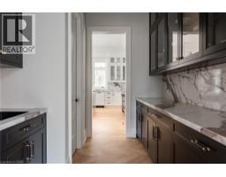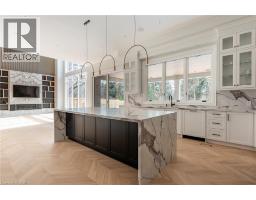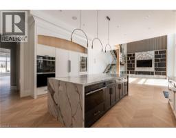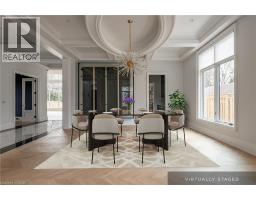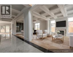 Set back on an expansive estate lot, this custom-built home offers nearly 9,000 sq ft of expertly curated living space, complete w/6 bedrooms + 8 bathrooms. Every inch of this residence reflects refined comfort + thoughtful design, blending texture, clean lines, open sightlines + a seamless connection to the outdoors. Inside, each space is anchored by custom-milled mouldings, bold stone, designer lighting, imported wood finishes, expansive glazing + smart home integration. The heart of the home is a chef’s kitchen with walk-in pantry + servery, flowing into a two-storey family room w/full-height windows + a dramatic fireplace feature wall. A functional utility wing includes ample storage + a pet wash station. The central staircase serves as a sculptural focal point, carrying light + elegance to the upper levels. Each bedroom suite offers privacy and sophistication, with custom dressing rooms + lavish ensuites. The primary retreat is a true sanctuary—double doors lead to a lounge + sleeping quarters w/a two-sided fireplace, private patio access, a fully outfitted dressing room + a luxe bath w/steam shower + soaker tub. A third-floor suite offers flexibility as a second primary or teen haven.The walk-out lower level expands the living space w/a custom wet bar, games area, theatre, rec room with fireplace + a private nanny suite. Outdoors, the home continues to impress with a spacious portico with central gas fireplace, flat-stone patios + a lush, tree-lined yard—perfect for summer entertaining or quiet evenings. Central to several local schools, shopping and walkable to Appleby College. An exceptional home in West Oakville, offering the space, design, and comfort your family has been looking for. (id:50886)