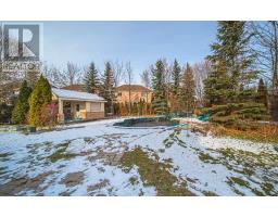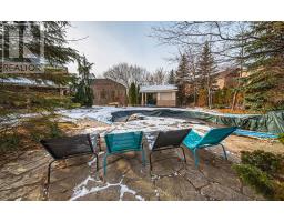 Stunning four bedroom oasis on family friendly Peacock Crescent, featuring a resort style backyard with a saltwater pool, waterfall feature, and a private cabana complete with change room, shower, and bathroom. Inside, the main floor welcomes you with a beautiful living room enhanced by large bow windows, elegant wainscoting, gleaming hardwood floors, and a striking hardwood staircase. The dining room showcases illuminated coffered ceilings, while the inviting family room offers a cozy gas fireplace for warm gatherings.The gourmet kitchen is a standout with granite counters, a centre island, marble flooring, and a dedicated breakfast area with a walkout to the backyard retreat. Upstairs, the spacious primary suite features two walk in closets and a luxurious five piece ensuite with corner tub and separate walk in shower. The additional bedrooms are generously sized and finished with hardwood floors.The finished basement provides excellent added living space with areas for exercise, games, a bar sink, and an additional kitchen setup ideal for extended family use.Located in a desirable Ajax neighbourhood close to parks, top rated schools, shopping, transit, and the waterfront, this home delivers the perfect blend of luxury, comfort, and everyday convenience. (id:50886)