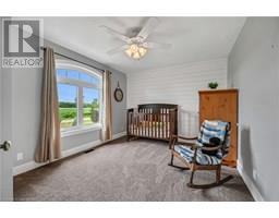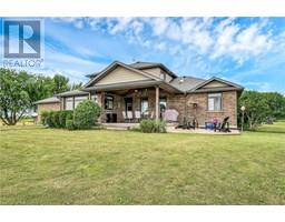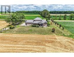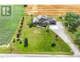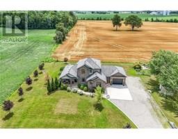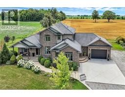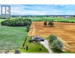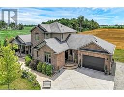 Absolutely spectacular custom built brick/stone bungaloft situated proudly on 200ft x 180ft (0.83 ac) landscaped lot surrounded by endless acres of calming farm fields enjoying forest backdrop in the distant horizon - no immediate neighbors in site! Relaxing 35 min commute to Hamilton, Brantford & 403 - 10 mins southwest of Hagersville fronting on quiet paved secondary road. This 2013 built home offers 2,994sf of tastefully appointed living area, 2,502sf unspoiled 9ft high basement plus 829sf oversized double car garage incs separate basement staircase. Plank wood designed stamped concrete front landing leads to convenient side foyer ftrs entry to laundry room & garage leads to the pinnacle of this “Masterpiece” the “World Class” kitchen boasting wall to wall sea of windows positioned above granite counters flanked by gorgeous cabinetry includes uppers extending to the top of 9ft ceilings - ftrs magnificent island, hidden 9x5 walk-in pantry, stylish tile back-splash & quality SS appliances. Continues to adjacent living room showcasing stone n/g fireplace & walk-out to 315sf covered porch - segues to multi-purpose family room (former salon) w/separate walk-out, 2pc bath, desired office, grand front foyer w/8ft doors - segues to lavish primary suite introducing large WI closet & personal 4pc en-suite complete w/jacuzzi tub & heated ceramic floors. Stunning 828sf 2nd level ftrs 3 huge bedrooms, 4pc main bath & roomy hallway. Desired heated ceramic tile floors are enjoyed in kitchen, dining room, front foyer & laundry room. Incredibly sized basement level incs rough-in bath w/sewage pump already installed, huge principal rooms (easy to finish)& utility rooms housing n/g furnace equipped w/AC, HRV, sump pump, owned n/g hot water heater & 200 amp hydro. Extras - central vac, 8000g water cistern, 8x16 shed, oversized drive extends to large concrete front parking pad, 210sf interlock fire-pit & excellent functioning septic system. Next Level Country Living - Redefined! (id:50886)