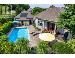 Welcome to 563 Lakeview, a one-of-a-kind residence that perfectly balances timeless design with modern luxury. Built by renowned local builder Deroo for his own personal use, this home reflects a level of craftsmanship and attention to detail rarely seen in today's market. From the moment you arrive, the striking curb appeal is undeniable; cobbled stone drive and walkways, wrought-iron fencing, and a stately entrance framed by professional landscaping create an immediate sense of sophistication. Inside, soaring ceilings, oversized windows, and tall doors flood the home with natural light while enhancing the feeling of space. The gourmet kitchen is designed for both everyday living and entertaining, featuring Cambria Quartz counters, custom cabinetry, premium appliances, and an expansive island that flows seamlessly into the great room and formal dining area. A main-floor games room and an elegant living space with a floor-to-ceiling brick gas fireplace add warmth and versatility. The primary suite is a true retreat, complete with his-and-hers closets and a spa-inspired ensuite boasting a jetted soaker tub, oversized walk-in shower, and private water closet. An additional main-floor bedroom provides comfort for family or guests. The partially finished lower level offers another bedroom and bath, a rec room & the potential for further development to suit your needs. Step outside to your private backyard oasis. A south-facing saltwater sports pool with solar heating, bleacher steps, and an auto-electric safety cover is complemented by a detached pool house with a 2-piece bath and in-ground sprinklers. Rarely available are two double garages, both insulated with a 10-ft overhead door ideal for RVs, boats, or oversized vehicles. With premium finishes including Laffit Stone, Cinco Brick, and stucco, this property was built to stand the test of time. 563 Lakeview is more than just a home; it's a lifestyle of elegance, comfort, and thoughtful design. (id:50886)