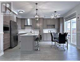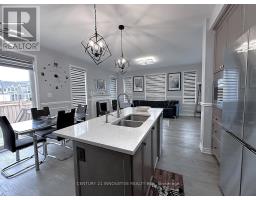 Welcome to this stunning 4-bedroom corner home in one of Milton's most desirable neighborhoods. Featuring 9ft ceilings, a bright open layout, and modern lighting throughout, this property blends style and functionality. The kitchen is equipped with quartz countertops, a stylish backsplash, soft-close cabinetry, and a built-in microwave. A spacious den on the main floor offers the perfect setup for a home office. Elegant wainscoting adds timeless character, while feature walls in the powder room, primary bedroom, and second bedroom elevate the interior design. The finished basement provides ample space for entertaining, with a rough-in for a 3-piece bathroom located in the storage room. Smart upgrades include motorized window and patio door coverings on the main floor, all controlled by remote. Walking distance to Rattlesnake Public School and Milton #9 Catholic Elementary School. The upcoming Laurier University and Conestoga College campus adds long-term value to this location. Inclusions: S/S induction range, S/S fridge, S/S dishwasher, built-in microwave, stackable washer/dryer, TV wall mount in family room (TV excluded), built-in shoe storage in den, all window coverings and light fixtures. (id:50886)