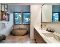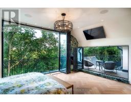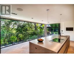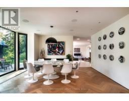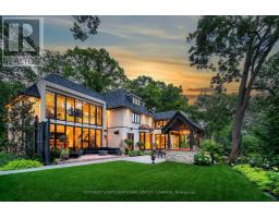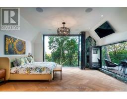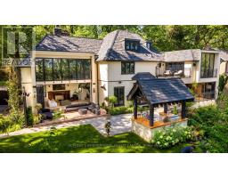 This stunning 1929 Tudor home has been meticulously transformed into a modern masterpiece, seamlessly blending historic charm with contemporary luxury and cutting-edge technology. Set on a sprawling 100' x 277' ravine lot, this $6 million renovation offers an exceptional living experience in one of Toronto's most prestigious neighborhoods. The grand exterior features a restored J.W. Fiske cast iron fountain and a heated cobblestone driveway, accommodating over 10 vehicles. Inside, every detail reflects craftsmanship and sophistication. The chef's kitchen, designed by Scavolini, is equipped with Wolf and Gaggenau appliances, while radiant-heated herringbone oak floors lead to floor-to-ceiling European folding glass doors that open to stunning ravine views. The spa-like bathrooms boast heated marble floors, European wall-mounted toilets, and custom millwork. Hidden HVAC systems, motorized blinds, and recessed lighting create a sleek, minimalist aesthetic. A state-of-the-art audio system, includes over 60 Bowers & Wilkins speakers, powered by Bryston, Sonos, and NAD amps. Four outdoor zones with buried subwoofers ensure exceptional sound across the property. The lower level is designed for entertainment, featuring 10' ceilings, polished concrete floors, a full-size arcade, a professional gym, and an indoor sauna. A walkout leads to a year-round heated pool, hot tub, and an all-season patio with infrared heaters, perfect for outdoor enjoyment in any weather. The home is fully equipped with app controlled automation for lighting, blinds, HVAC, security, audio, access, pool/spa/sauna. Residents enjoy access to the exclusive Baby Point Club, offering tennis, lawn bowling, and community events. A perfect blend of historic charm and modern luxury, this home offers an unmatched living experience. The home features a durable composite cedar roof with a lifespan of up to 60 years, offering long-lasting protection and timeless aesthetic appeal. (id:50886)