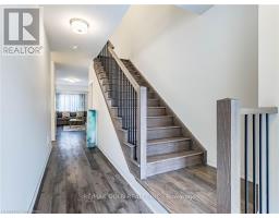Welcome to this exceptionally crafted 3-bedroom, 3-bathroom freehold townhouse, located in one of Paris' most desirable communities. Thoughtfully upgraded with over $20,000 in premium enhancements. Step inside to a bright and airy main floor featuring 9 ft ceilings and engineered hardwood flooring, creating a seamless flow throughout the living and dining spaces. The open-concept gourmet kitchen boasts upgraded cabinetry, a spacious eat-in design, and stylish finishes ideal for both everyday living and entertaining.A striking dark-stained oak staircase with sleek metal pickets adds a sophisticated architectural touch, leading you to the private upper level. The luxurious primary suite features a spa-like glass shower, generous closet space, and an abundance of natural light. Two additional bedrooms offer versatility for families, guests, or a home office. (id:50886)