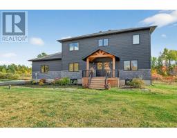 This impressive 2021 custom-built, two-storey residence sits on 2.5 acres of tranquil country property in Madawaska Shores area, with almost 2500 sq' of living space above grade and another approx 1200 sq' in the basment level nearly finished as well. The covered front porch welcomes you into this carpet-free home with wood-look luxury vinyl plank flooring, marble-inspired ceramic tile, sophisticated oak and black iron railings, refined light fixtures, and a neutral color palette throughout. 4 Bedrms, two of which have walk-in closets, and one conveniently located on the main floor serves as an office with French doors adjacent to the foyer. 3 Bathrms in total: a powder rm on the main and two full bathrms on the upper level. Open-concept main floor with 9' ceilings features a pristine kitchen equipped with white cabinetry, quartz countertops, 7 premium stainless steel appliances, a generously sized walk-in pantry, a butler's pantry, and a mudrm with direct garage access. Clear sightlines from kitchen to dining area and living rm, which includes a gas fireplace and two sets of double glass doors to the rear deck. Second floor comprises a spacious primary bedrm with walk-in closet and 5-piece ensuite featuring double vanity sinks, soaker tub, and generous walk-in glass shower. Two additional bedrms are bright and roomy, each with double closets. Completing this level are a 4-piece bathrm, a laundry rm, and two expansive linen closets. Basement level features floors in same luxury vinyl as the rest of the house, and exterior walls are finished and trim. The roughed-in bathrm, interior dividing walls, and ceiling to be completed by buyer as desired. A 2-car garage as well as driveway parking for 8+ vehicles makes it well-suited for contractors, RVs or boat trailers. Short 10 minute drive to the shopping centres, restaurants and Hwy 417; and approx 30 minutes to Kanata, and 60 minutes to downtown Ottawa. (id:50886)