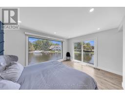 This all season, fully winterized home is nestled in a peaceful neighborhood just minutes from shops, local amenities and redefines lakeside living with all the luxury features you'd expect in a high-end home. Boasting 6 spacious bedrooms and 3 full bathrooms, this home provides ample space for family, guests, or even a luxurious remote work setup. Step into the heart of the home - a chef's kitchen designed to impress, complete with waterfall quartz countertop, a pot filler, Samsung stainless steel smart appliances, a lazy Susan for easy storage, and pot lights. The great room is a true showstopper with coffered ceilings, and an open shutter-style window that connects directly to the deck - perfect for entertaining. Thoughtful touches like pot lights throughout the interior and exterior, built-in external speakers, external security cameras and a dedicated wine storage area elevate the lifestyle experience. Outdoor living is at its finest with multiple wrap-around balconies, a rooftop deck with panoramic views, and your very own private dock - ideal for boating, fishing, or quiet morning coffees by the water. Host unforgettable gatherings around the fire pit, or enjoy some friendly competition on the inground basketball court. The 3-car garage provides plenty of room for vehicles, lake toys, and storage. Whether you're relaxing by the fire, enjoying sunsets on the rooftop deck, or cooking gourmet meals in your modern kitchen, this property offers a rare combination of privacy, style, and functionality. This is more than a home it's a lifestyle, experience the perfect blend of lakeside tranquility and modern luxury! (id:50886)