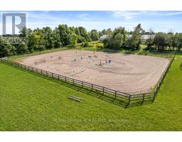 Turnkey 49-Acre Equestrian Facility - Ready for an experienced horse professional to take the reins! Currently operating as a pleasure riding & eventing facility, this property is fully equipped for boarding or training in any discipline, featuring 10 lush paddocks with frost-free hydrants and power for heated winter water, an insulated, ventilated 20-stall barn with heated tack room, 3-piece bath, feed room, wash and grooming stalls, and huge hay loft. Train year-round in the attached 76' x 160' indoor arena with operable windows and good footing, or take advantage of the outdoor jumping field, 150' x 200' sand ring, and grass dressage field. Two productive hayfields add income potential or self-sufficiency, while a 23' x 30' heated portable with hydro can serve as an office or studio. The 2,877 sq. ft. home (1997) offers a sophisticated, comfortable base of operations. Wide-plank, hand-scraped hickory hardwood and cathedral ceilings set the tone, while the chefs kitchen with Wolf cooktop and leathered granite counters flows into the dining area and Great Room with beamed cathedral ceiling. Flexible accommodation includes a main-floor bedroom with ensuite and three additional bedrooms upstairs, plus renovated bathrooms with heated floors and towel warmers. The primary retreat features a dressing room, walk-in closet with organizers, and a spa-inspired ensuite. An unspoiled walk out lower level offers even more possibilities. Updates designed for efficiency and peace of mind include a 2024 cold-climate heat pump with propane backup, a Generac generator to power farm essentials, and durable Goodfellow siding. The Pella windows are also energy efficient. Located minutes from Angelstone, Meadowlarke North, and Palgrave, this property is an entrepreneurs dream for a fully operational equestrian boarding or training business. (id:50886)