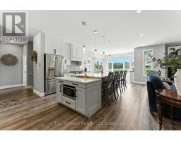 Stunning Modern Executive Home in Eden! Nearly 3,500 sq. ft. on a .79 Acre lot nestled in the friendly village of Eden, just south of Tillsonburg, this luxurious modern executive residence offers beautifully designed living space. Inside, an impressive open-concept layout showcases a custom chefs kitchen with marble countertops, oversized island, and premium cabinetry, flowing seamlessly into the elegant dining and living areas. A striking gas fireplace and expansive windows create a warm, inviting atmosphere filled with natural light. The primary suite is a private retreat, featuring a spa-inspired 5-piece ensuite with a soaker tub, walk-in shower, dual vanities and in-floor heating, along with a spacious walk-in closet. Two additional bedrooms, a 4-piece bath, and convenient main-floor laundry complete the thoughtful main level design. High-end upgrades include engineered LVP flooring throughout the main floor and exquisite finishes that make this home truly mesmerizing. The fully finished lower level is designed for both relaxation and entertaining, boasting a grand open-concept recreation room with custom built-ins and gas fireplace. The sophisticated wet bar with floating shelving, built-in microwave, wine fridge, and beer fridge elevates every gathering. A premium laminate finish, an additional bedroom, a luxurious 3-piece bathroom with walk-in shower, and abundant storage complete this remarkable space. Outdoors, enjoy the serenity of the private lot with mature trees, complemented by a large deck overlooking open fields and nature beyond the perfect backdrop for private entertaining or peaceful escapes. A spacious two-car garage offers ample parking and storage. Quietly situated on a dead-end street, near a local playground and scenic walking paths along a historic rail line, this property beautifully blends privacy, elegance, and small Village charm. (id:50886)