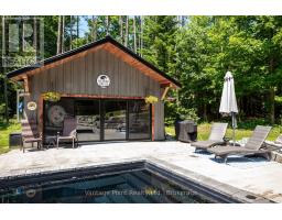Welcome to your private oasis! Nestled on a private 6-acre property, this stunning estate offers the perfect blend of luxury, comfort, and tranquility. As you drive up the newly asphalted winding driveway, you'll immediately notice the exquisite landscape and privacy being surrounded by beautiful tall trees creating a picturesque and inviting entrance. The centerpiece of the beautiful backyard is the in-ground heated swimming pool, complete with a spacious concrete patio complimented by impressive armor stone retaining walls, making it perfect for lounging and entertaining. Adjacent to the pool, the 500 square foot pool lounge has the comfort of heating, cooling, a stylish bar, and a cozy gas fireplace, providing the ideal setting for year-round enjoyment. This exceptional property also includes a 2-car garage equipped with an electric car charging station. Inside, the home offers a seamless blend of elegance and practicality with an open concept kitchen and living area. The master bedroom is a true retreat, featuring access to the back deck by the hot tub, a walk-in closet and a luxurious ensuite bathroom, and for added convenience there's a laundry chute in the closet. The secluded deck and a soothing hot tub provide additional outdoor relaxation options, all surrounded by tall trees that enhance the sense of privacy and seclusion. The finished basement adds valuable living space, perfect for a family room, home office, or recreational area. Experience the ultimate in luxury living with this remarkable property. Close to multiple lakes such as Farden lake, Bells Lake, Townsend Lake, Irish lake, Robson Lake, and Eugenia lake. The Glenelg Klondike is also around the corner which features 400 acres of trails and groomed cross country skiing trails. (id:50886)