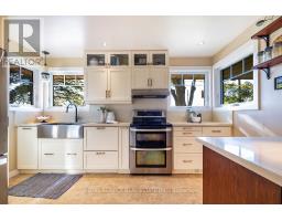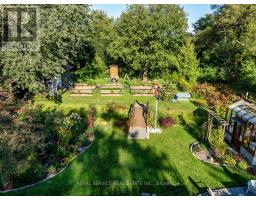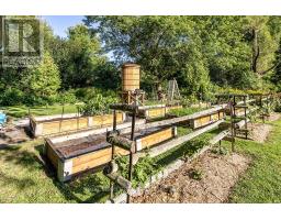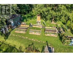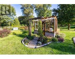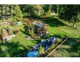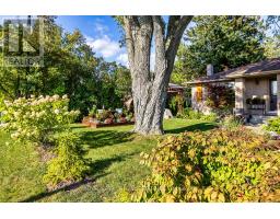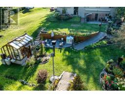Welcome to this stunning country bungalow, a true retreat for nature lovers & garden enthusiasts alike. Nestled among mature trees & beautifully manicured perennial gardens, this home offers a rare blend of charm, functionality, & outdoor living at its finest. Step inside to an inviting living room, complete with a large bay window that fills the space with natural light, and electric fireplace. The heart of the home is the custom kitchen, showcasing stainless steel appliances, a double oven, double-drawer dishwasher, and a convenient breakfast bar. Custom cabinetry provides both style & storage, making this kitchen as practical as it is beautiful! The main floor features three spacious bedrooms, each with large windows & ample closet space. Halfway down the stairs you'll find one of the hardest-working spaces in the house, the laundry room. Equipped with heated floors & direct access to the oversized two-car garage, this room makes everyday tasks effortless. The garage itself is ideal for hobbyists or professionals alike, with a built-in workshop, storage, and access to both the front and back yards. Continue to the fully finished basement, where a versatile kitchenette with plenty of storage adds convenience and flexibility. Just off this area, a dedicated cold room provides the perfect space for canning, or garden harvest storage. The large recreation room features a gas fireplace and a walk-out to the backyard, seamlessly blending indoor and outdoor living. Step outside to experience a backyard oasis unlike any other. Meandering walkways guide you through perennial gardens, vegetable plots with their own water tower & irrigation systems, and tranquil water features including a seasonal stream create a peaceful atmosphere. A greenhouse provides year-round gardening opportunities, while an enchanting bunkie complete with a double bed offers a delightful retreat for guests! Private well, refurbished in 2011, provides reliable high-quality water. (id:50886)