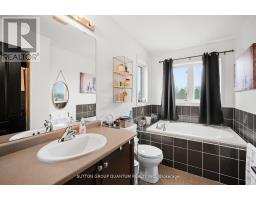 Beautifully appointed two-story home, boasting 4 spacious bedrooms + over 2000 sq ft of living space. Step inside to discover the main floor, where a cozy gas fireplace warms the living room, enhanced by hardwood floors. The formal living room offers ample space for an 8-seat dining suite. Convenient access to garage from main floor hallway. The eat in kitchen is a fantastic gathering spot for the family, complete with sliding glass walk out that leads to large deck, ideal for summer entertaining while enjoying the picturesque green surroundings. Upstairs, you will find 4 generous sized bedrooms, including a primary suite with a walk in closet and ensuite with soaker tub + separate shower. The main bath is a 4pc and a convenient 2 pc on the main floor. The fully finished lower level features a sliding glass w/o to a patio, perfect for enjoying serene green space views. Oversized interlocking brick drive enhancing the curb appeal, making it a perfect blend of style and functionality. (id:50886)