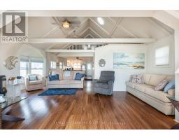Four-season home located directly on Lake Erie in the Peacock Point community. The property features an open-concept layout with water and sky views, a natural gas fireplace, and a modern 3-piece bathroom. The kitchen includes stainless steel appliances, ample cabinetry, and generous counter space. A spacious loft provides additional room for sleeping, office use, or storage. Outdoor spaces include front and rear decks, a lower patio, and a second seating area overlooking the lake. Additional features include a cistern for fresh water, seasonal water service through the Peacock Point Community system (Spring to Fall, annual cost: $315.00), a professionally built concrete break wall with steel stairs to the sand and gravel shoreline, a steel roof (2019), Fence (2024), parking for three vehicles, a holding tank for wastewater, an owned hot water tank, and on-site natural gas and electricity. Flexible closing is available. Recent survey available. (id:50886)