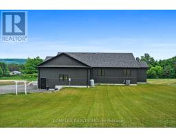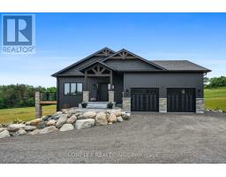Welcome to your slice of paradise- a stunning 6-bed, 3-bath country home in Cramahe Township! Nestled on a 2-acre lot, this one year old custom-built gem blends modern luxury with serene rural living. Step inside to natural light flooding through south-facing windows, illuminating the open-concept main floor. The heart of the home is the custom-designed kitchen, a chef's dream featuring sleek granite countertops, a massive 10-foot island with a farmhouse sink, and top-of-the-line stainless steel appliances. Stylish pendant lighting and recessed pot lights create the perfect ambiance, whether you're preparing a gourmet meal or hosting a casual brunch. The dining room flows to a private deck with a gas BBQ line, perfect for gatherings or quiet evenings. Enjoy coffee with serene views of your expansive lot. The spacious living room is a true highlight, designed to inspire awe with its 15-foot cathedral ceilings, exposed beams, and a striking stone fireplace with a cozy hearth. Oversized windows frame breathtaking views of the rolling landscape. The primary bedroom is a luxurious sanctuary, complete with a walk-out to a private deck where you can unwind in peace. The spa-inspired ensuite is a haven of relaxation, featuring high-end finishes and an attached walk-in closet. Two additional bedrooms on the main floor offer versatility, perfect for children, guests, or a home office. The fully-finished basement features 3 bedrooms, a 5-piece bath, office, rec room, & ample storage, ideal for families or guests. A laundry room with garage access enhances practicality. Outside, the 2-acre lot is a private oasis with quiet roads for walking, cycling, or ATVs. High-speed satellite internet keeps you connected. Just 5 min north of Hwy 401 in Brighton, it offers easy access to Belleville, Trenton & the GTA, ideal for families, professionals, or anyone craving a peaceful retreat with urban convenience. This home is a lifestyle-luxurious, spacious & serene. Schedule your tour today! (id:50886)