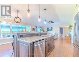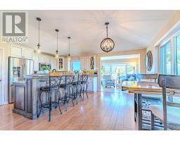 Spacious raised bungalow on the outskirts of Lindsay, offering 3+3 bedrooms, 3 bathrooms, and a fully finished basement apartment with separate entrance. The main floor features an open kitchen/dining area with engineered hardwood floors and granite countertops, a bright living room with fireplace and walkout to the deck, and a sunroom with an additional walkout. Three bedrooms with double closets, a 4-piece bath, a 2-piece bath, and a laundry room complete the level. The finished basement is ideal for multi-generational living or tenants, with its own kitchen/dining area, walkout mudroom, 4-piece bath, utility room, and three bedrooms (including one with a walk-in closet). Set on a 0.81 acre lot, the property includes a detached double garage, circular driveway with ample parking, hot tub, gazebo, and numerous upgrades throughout. A perfect blend of space, function, and convenience, just outside of town. (id:50886)