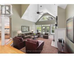 Nestled on a beautiful forested lot in the prestigious area known as The Forest located halfway between Collingwood and the ski hills. This beautifully crafted bungalow is a rare blend of luxury, space, and privacy. Surrounded by mature trees, two tranquil garden ponds with a charming waterfall feature, and beautiful private views, this property offers a peaceful retreat just minutes from town amenities. Built with exceptional craftsmanship, the home features a thoughtful main floor layout with a spacious primary suite, main floor laundry, and both a gas fireplace and a cozy wood-burning fireplace that add warmth and elegance to every season. The heart of the home opens to breathtaking views of the lush, private backyard, making it perfect for entertaining or quiet evenings at home. Upstairs, you'll find three generous bedrooms, a versatile den or movie room, and ample storage for family living or guest accommodations. A rare three-car garage provides plenty of space for vehicles, hobbies, or workshop needs. This is more than a home, it's a lifestyle property with timeless appeal, set on a large, landscaped lot in one of the area's most sought-after neighbourhoods. (id:50886)