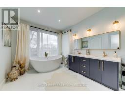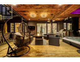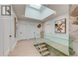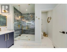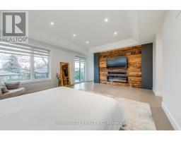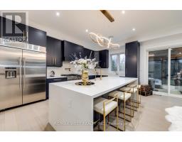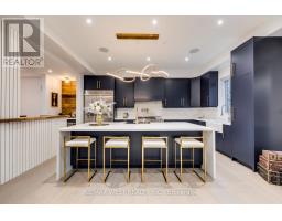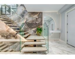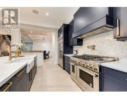 Welcome to this custom luxury home crafted for those who want scale, design and functionality without compromise. Sitting on a rare 52 x 143 ft lot in Yorkdale-Glen Park, this detached residence offers 5776 sq ft of Living Space including a beautifully finished, furnished lower-level suite with private entrance, patio and reliable income. The arrival is impressive: a double asphalt driveway, illuminated interlock pathway and tall double doors open to a foyer wrapped in custom shelving and a feature wall. From here, the home flows naturally into a sophisticated dining room with a statement chandelier, followed by a warm and inviting living room where a sleek fireplace, illuminated media wall, ceiling speakers and custom shelving create the perfect gathering space. The kitchen serves as the true heart of the home, designed with a large Island, high-chair seating, dual sinks, pot filler, wet bar, boutique lighting and ceiling speakers. A walkout leads to a covered deck engineered for all seasons with wind and rain screens, a built-in BBQ with cook-top. Also on the main floor is a stunning glass-walled office with barn-wood ceiling and custom cabinetry. A dramatic skylight crowns the staircase leading to five bedrooms. The primary suite offers a fireplace with built-ins, pendant lighting and a walk-in closet with skylight, custom cabinetry and a full shoe wall. The spa-style en-suite features a glass-enclosed shower with body sprays, an exposed soaker tub and a private water closet. Secondary bedrooms include European built-ins and Jack-and-Jill washrooms, supported by a full laundry room with sink, cabinets and gas dryer. The finished lower level adds three bedrooms, two full baths, a hidden cold room door and a walkout to a private gated patio-currently rented and generating $3,800 per month. Outdoors, the fully fenced yard includes irrigation, cameras, speakers, Jacuzzi tub, shed and a heated double garage with rough-in all ready for a heated driveway. (id:50886)