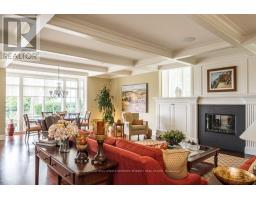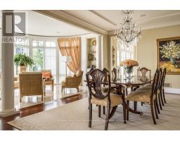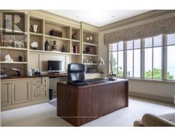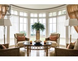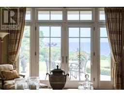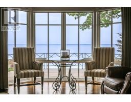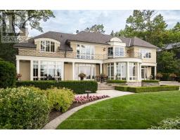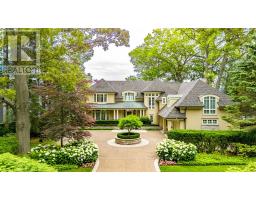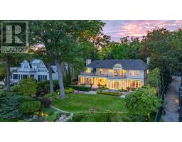This exquisite French chateau-style estate, designed by Gren Weis, is gracefully positioned on a prestigious waterfront parcel with coveted riparian rights, in one of South-East Oakville's most sought-after enclaves. With breathtaking views of Lake Ontario and a rare sense of privacy, this residence offers an unparalleled lifestyle of elegance and tranquility. Masterfully designed to blend classical architecture with modern functionality and refined interiors. From richly detailed millwork, ceiling details, radiant heated flrs to upgraded light fixtures, every finish has been thoughtfully curated to reflect timeless sophistication. Expansive principal rooms with lake vistas provide a stunning backdrop for both grand entertaining and intimate family living.The main level is anchored by a magnificent living room with double French doors that welcome in the lake breeze, a show stopping solarium, formal dining room, a gourmet kitchen with professional appliances, prep kitchen, and sunlit family room with waffle ceilings.The second level features a serene primary suite with spa-inspired ensuite and dressing room, 3 additional bedrooms, 2 bathrooms, and a beautifully appointed library offering sweeping views of the water.The lower level offers exceptional scale and light with full-size windows, radiant floors, a recreation room with wet bar, fitness room with adjacent full bathroom, guest suite with ensuite, and abundant storage ideal for extended family or hosting with ease.Your private garden offers lush, manicured grounds and is framed by the natural beauty of the lake. Multiple walkouts to the yard and easy access to the shoreline make this property a rare offering. Launching your paddle board or canoe couldn't be easier.Just steps to Gairloch Gardens and moments from the boutiques, fine dining, and cultural richness of downtown Oakville, as well as top-tier private and public schools, this estate presents a lifestyle defined by elegance, ease, and enduring value. (id:50886)