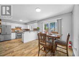Welcome to this beautifully maintained former model home nestled in the sought-after Pond Mills neighbourhood. Backing onto Naomi Almeida Park, this brick 2-storey residence offers the perfect blend of comfort, convenience, and character-ideal for first-time buyers or young families. Step onto a poured concrete front entry with elegant wrought iron railing, leading you into an inviting open-concept living and dining area, perfect for both relaxed family living and seamless entertaining. The main floor powder room adds functionality and guest convenience. The sun-filled kitchen boasts a south-facing window, classic white cabinetry, a breakfast bar for three, and a cozy eat-in area with sliding patio doors that open to a private, fully fenced backyard. Enjoy outdoor living with a stone patio, electric retractable awning, spacious dining deck, and a gazebo-complete with a metal dining set and BBQ included! Upstairs, you'll find three generously sized bedrooms, including a primary suite with a walk-in closet, ceiling fan, and ample space for a king-sized bed. A 4-piece main bathroom and second walk-in closet offer additional comfort and storage. The newly finished basement features a full bathroom, a spacious rec room perfect for family leisure time, a laundry area, and ample storage throughout. Beautiful landscaping enhances curb appeal, while the location offers walking distance to schools, day care, shopping, and easy access to Highway 401-perfect for commuters (id:50886)