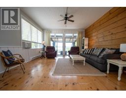 Welcome to your own private retreat on beautiful Lower Buckhorn Lake. This fully turn-key 2-bedroom cottage offers 173 feet of pristine shoreline with a wade in sandy beach area - on a spacious, level lot with landscaped grounds and stunning views. Designed for relaxed living, the open-concept layout features wide plank flooring, a wood stove, and a bright, water-facing living room that brings the outdoors in. The kitchen and 3-piece bath provide convenience, while most furnishings and contents are included. Outdoors, the property truly shines. A shallow, sandy beach provides safe, family-friendly swimming, while a private dock offers space for boating, lounging, or fishing. The yard is framed by natural armour stone for a polished, timeless look, and there is ample room for outdoor games, barbecues, and evening gatherings. A cozy bunkie adds additional guest accommodations, making this retreat perfect for hosting family and friends. Located on the Trent Severn Waterway, this property offers endless opportunities for boating and exploration. Just minutes from the village of Buckhorn and under 40 minutes to Peterborough, the cottage provides both seclusion and convenience. Whether you're seeking a weekend getaway, a seasonal retreat, or an investment opportunity, this property delivers.With its turn-key convenience, family-friendly shoreline, and prime location, this Lower Buckhorn Lake cottage is a rare opportunity to own a slice of cottage country magic. (id:50886)