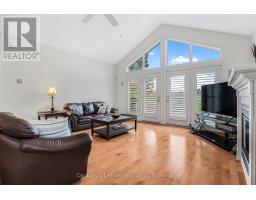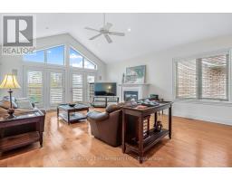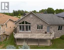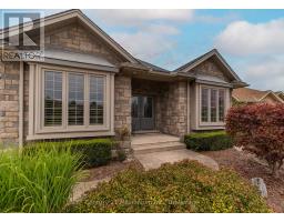 Backing directly onto the 11th hole of the Meaford Golf & Country Club, this all-stone bungalow offers sweeping views of the fairway and tranquil pond and unlike alot of other homes for sale on the course, this one is freehold with no monthly condo fees. Built in 2006 by respected builder Tom Clancy, its one of the best values in the area for golf course living. Nestled on a quiet cul-de-sac among other prestigious homes, you're just minutes to the marina and a short drive to Blue Mountain. The full stone exterior, symmetrical gabled rooflines, twin bay windows, and impressive front entry create timeless curb appeal. A concrete driveway leads to the oversized double garage, with plenty of parking for guests. Inside, natural light floods the space, highlighting the upscale finishes and craftsmanship. Hardwood floors run throughout the main level, while soaring ceilings create an airy, grand feel. The formal dining room features a tiered tray ceiling with pot lights, and the kitchen boasts rich wood cabinetry, a breakfast bar, and an open flow into the spacious living room with a gas fireplace and a wall of windows framing the golf course view. Step onto the elevated deck with glass railings and soak in the peaceful vista of the pond and manicured greens. The primary suite is generously sized with spectacular backyard views, a walk-in closet, and a spa-like ensuite with tiled glass shower, double vanity, and jacuzzi tub. A second bedroom or office, main floor laundry, add convenience. The finished lower level includes a rec room with walkout to the backyard, a third bedroom, 3-pc bath, and plenty of room to expand. If you've been dreaming of golf course living without the condo fees, this rare freehold property combines beauty, value, and an unbeatable lifestyle. (id:50886)