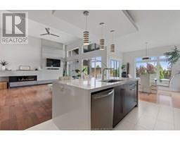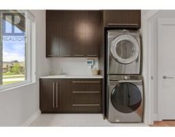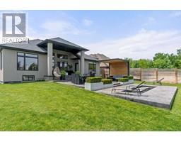 Exceptional custom-built ranch offering a seamless blend of modern design, quality craftsmanship, and upscale comfort. Located in a desirable, quiet neighbourhood, this home showcases elegant finishes and thoughtful details throughout. Step into a designer kitchen featuring Cambria quartz countertops with dramatic waterfall edges, a hidden walk-in pantry, and sleek cabinetry—ideal for everyday living and entertaining. The open-concept layout is anchored by soaring 15-foot ceilings, a striking linear gas fireplace, and bold architectural accents, creating a space that’s both impressive and inviting. The lower level is finished with two additional bedrooms, ample storage, and flexible living space—perfect for a growing family or guests. Outside, the private backyard is a true retreat, with custom lighting, water features, and a covered porch for year-round enjoyment. A rare opportunity to own a turn-key home that effortlessly combines luxury, privacy, and function. Schedule your private tour today. (id:50886)