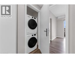 Welcome to unit 307. This rare 2-bedroom, 2-bath condo located in the heart of Kitchener. The unit is 823 sq. ft and the largest 2-bedroom unit in the building. Located on the podium level, you can skip the elevator and access your unit directly from your owned parking spot on the 3rd floor. The layout boasts a spacious primary bedroom with a walk-in closet, while the second bedroom features double closets, all fitted with upgraded organizers. Additional highlights include automated powered roller shades, private balcony and in-suite laundry. The condo is close to it all- LRT access, Conestoga College, government buildings and great restaurants. Don't miss out on this rare opportunity to own a spacious unit in one of Kitchener’s premier buildings! (id:50886)