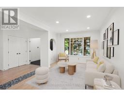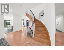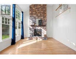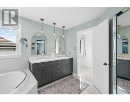 Welcome to this exquisite Craftsman-style executive residence, gracefully positioned on a quiet crescent in prestigious Kanata Lakes. Set on a large corner pie-shaped lot w/timeless curb appeal, a charming covered front porch, & a family-friendly setting just minutes from Beaver Pond trails & top-ranked schools, this home blends classic character w/refined modern updates. The main level showcases a tiled foyer w/French drs, a beautifully renovated powder room, & elegant LR & DR enhanced by refinished HW flooring, stone accents, & crown moulding. At the heart of the home, the dramatic two-storey FR is framed by a Juliet balcony above & a striking WETT-certified wood-burning FP w/floor-to-ceiling stone surround. The thoughtfully updated kitchen offers quartz counters, herringbone backsplash, peninsula w/bar seating & sink, island w/double sink, SS appl, & a bright breakfast area w/access to the landscaped rear yard. A sophisticated main-floor den w/custom wood built-ins & shutters provides the perfect executive office or retreat. The second level presents a true 5-bdrm layout, including a luxurious primary suite w/transom ceiling, WIC, & spa-inspired ensuite w/dbl sinks, soaker tub, & slate shower w/rain head. The renovated main bath completes this floor. The finished LL extends the living space w/a rec rm, dbl-dr flex/gym, private bdrm w/3-pc bath, & a spacious laundry rm. Outdoors, the fully fenced yard features an interlock patio, mature fruit trees, & generous play space. Extensive updates include int painting (2025), patio door replaced (2025), kitchen flooring & cabinetry (2024), main floor bath (2024) ensuite & bath vanity & lighting (2024), exterior paint (2024), & landscaping/driveway (2022), furnace (2021), washer/dryer (2021), A/C (2018), roofing updates by previous owner (2018). Security system is owned. A rare offering combining elegance, warmth & location. 24 hrs irrev. on all offers. Some photos virtually staged. (id:50886)