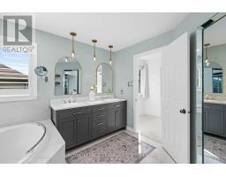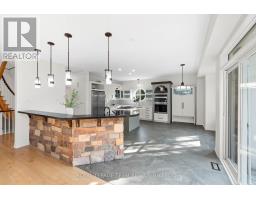 Welcome to this exquisite Craftsman-style executive residence, offering over 4,800 finished sq ft on three levels, gracefully positioned on a quiet crescent in prestigious Kanata Lakes. Set on a large corner pie-shaped lot w/timeless curb appeal, a charming covered front porch, & a family-friendly setting just minutes from Beaver Pond trails & top-ranked schools, this home blends classic character w/refined modern updates. The main level showcases a tiled foyer w/French drs, a renovated powder room, & elegant LR & DR enhanced by refinished HW flooring, stone accents, & crown moulding. At the heart of the home, the dramatic two-storey FR is framed by a Juliet balcony above & a striking WETT-certified wood-burning FP w/floor-to-ceiling stone surround. The thoughtfully updated kitchen offers quartz counters, herringbone backsplash, peninsula w/bar seating & sink, island w/double sink, SS appl, & a bright breakfast area w/access to the landscaped rear yard. A sophisticated main-floor den w/custom wood built-ins & shutters provides the perfect executive office or retreat. The second level presents a true 5-bdrm layout, including a luxurious primary suite w/transom ceiling, WIC, & spa-inspired ensuite w/dbl sinks, soaker tub, & slate shower w/rain head. The renovated main bath completes this floor. The finished LL extends the living space w/a rec rm, dbl-dr flex/gym, private bdrm w/3-pc bath, & a spacious laundry rm. Outdoors, the fully fenced yard features an interlock patio, mature fruit trees, & generous play space. Extensive updates include int painting (2025), patio door replaced (2025), kitchen flooring & cabinetry (2024), main floor bath (2024) ensuite & bath vanity & lighting (2024), exterior paint (2024), & landscaping/driveway (2022), furnace (2021), washer/dryer (2021), A/C (2018), roofing updates by previous owner (2018). Security system is owned. A rare offering combining elegance, warmth & location. 24 hrs irrev. on all offers. Some photos virtually staged. (id:50886)
