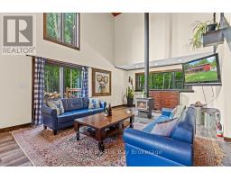 Looking for peace and tranquility, where the only sounds you hear are the birds gentle tweets? Then this home is for you! Through the winding lane leads you to the perfect private oasis with complete privacy 360 degrees. This stunning home was intentionally positioned to soak up the sun rays all day, and catch the sunsets each evening. 11+ acres of premium hardwood trees are not only beautiful, but provide maple syrup, top notch firewood and lumber for your next project. Inside soaring ceilings, an open loft layout and oversized windows bring light and beauty to the space. Stay toasty warm with in-floor heating throughout the main and lower floors. The upper level has 3 good size bedrooms including a primary suite with 4 piece ensuite and a private deck. The finished basement has an additional bedroom, beautiful bathroom and your very own Theatre Room with step up lounge seating and built in speakers. Explore nature and enjoy the land all year round. Walk, ATV or snowmobile through your private trails, or for longer adventures join the expansive conservation trails right off of your driveway. When it's time to relax park your toys and head over to the Forest Retreat with Sauna Haus and Hot Tub to unwind from the day. Plenty of parking and storage is found in the oversized dbl garage with an extended door for trucks and boats. For additional storage, or the possibility to create additional living space, the Quonset Hut is insulated and prepped for in floor radiant heating (960 sqft). Extensive improvements have been completed since 2020 including: All new windows and doors, new water softener, 40 x 12 foot front deck, back deck, all new flooring throughout, 5 new appliances, 2 new bathrooms, new hot tub and many more! Located just 2 hours from the GTA, 25 minutes to Beaver Valley and 35 minutes to Blue Mountain, this home will make the perfect country retreat, or full time home! (id:50886)