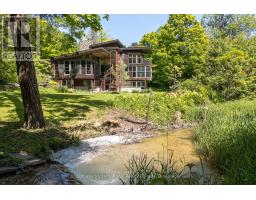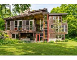 Built in 2012 by the original owners, this exceptional property offers a rare combination of architectural artistry and natural beauty. Set on nearly 5 acres with the serene Pine River winding through, this custom-built home is a true retreat, blending stone, wood, metal, and glass into a striking contemporary design that complements the landscape. Enjoy the calming sounds of the river from screened window walls, a Muskoka room, and multiple walk-outs that seamlessly connect indoor and outdoor living. Inside, the four-bedroom, three-bathroom home is filled with thoughtful and unique details, including custom kitchen cabinetry and hardware, a dramatic glass-encased stairwell, and a handcrafted two-level masonry heater with a built-in pizza oven. A starlight ceiling adds a touch of enchantment. The entire second level is dedicated to a luxurious primary suite featuring a spa-inspired bathroom, walk-in closet, a laundry area, private balcony, and a versatile office or yoga studio. This special home offers year-round enjoyment and comfort, whether you're warming up by the masonry heater in winter or fishing for trout in the river. Spring-fed water source, energy-efficient radiant heat panels, generator and a location just over an hour from the GTA and airport. Designed to let the countryside in, this is a home that must be experienced in person. (id:50886)