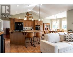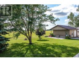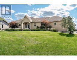 Here it is! A beautiful sprawling bungalow strategically placed on a large lot backing on to scenic farmland. This quiet, friendly neighbourhood on the edge of Mitchell offers a countryside feel yet provides the conveniences of proximity to town. As you enter, your gaze immediately goes towards the stunning southern view and the abundance of natural light pouring in. Open concept layout with cathedral ceilings introduces you to the living room, kitchen and dining room. Perfect for entertaining! The living room boasts a gas fireplace with custom stone and cabinetry surround, creating a cozy conversation area. Granite countertops, U-shaped island and modern finishes in the kitchen allow for superior and stylish functionality. The primary suite is large and bright with 9 foot ceilings accentuating the convenient patio doors and lovely ensuite. A comfortable family room is a bonus for when you want quiet time with your book and beverage. Two other bedrooms are found on this level as well as a 5 piece main bathroom. In keeping with the one floor living theme, the renovated laundry room completes this level. The finished basement provides the extra space for family and guests to relax and spread out! The focal point is the commercial grade bar, with stainless steel sink and an abundance of storage. This well-kept home is equipped with a newer heating and cooling system as well as in-floor heat in many areas. The space is endless for vehicles outside whether it be driveway parking or one of the 3 garage spots. Car enthusiasts will also love the detached shop that is ready for in-floor heating. The partially covered patio extends the length of the home with multiple sitting areas and a hot tub. An amazing property with brilliant views and the serenity you're looking for! Now's your chance. (id:50886)