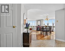 Enjoy this expansive corner condo in the highly sought-after Royal Palm at 100 Grant Carman Drive. This popular layout features wrap-around windows that fill the home with natural light. Located in desirable Parkwood Hills, you'll love the proximity to Dows Lake, shopping, restaurants, transit, and everyday conveniences. The open-concept living and dining area offers hardwood floors, wrap-around windows overlooking peaceful greenspace, and a French door leading to a covered balcony. The chef's kitchen includes pot drawers, ample cabinetry, generous counter space, pull-out shelving, a glass display cabinet, a built-in desk/office area, and sliding doors to the balcony. Additional features include in-unit laundry, a primary bedroom with walk-in closet and 3-piece ensuite, and a second bedroom with hardwood flooring. The Royal Palm is set on over 4 acres of landscaped grounds with walking paths and patio areas, and offers premium amenities including a gym, sauna, indoor pool with outdoor patio and BBQ area, party room with kitchen, library, bicycle storage, and underground parking with a car wash bay. This spacious, sun-filled condo is a rare find in one of Ottawa's most desirable communities. (id:50886)