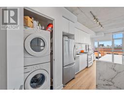 Step into the ultimate urban dream - a rare corner loft perched high in a boutique 8-story building by Streetcar Developments. This lower penthouse redefines city living with style, sophistication, and total comfort in the heart of Queen West. Wake up to sun-drenched mornings and panoramic city views through floor-to-ceiling windows. Every detail of this home has been curated for those who appreciate design, quality, and ease - from the chef-inspired kitchen with Italian porcelain finishes, a 6-ft waterfall island, and top-tier gas appliances, to the high-end furnishings that make entertaining effortless. The bedroom retreat features remote-controlled blackout blinds for the perfect night's sleep, while the spa-like bathroom with black-and-white marble vanity, ambient lighting, 6-ft mirror, and Toto Japanese toilet adds a touch of indulgence to your daily routine. Located steps from everything you love - Ossington's top restaurants (La Banane, Mamakas, Badiali Pizzeria), TTC access, and two grocery stores right outside your door - this home delivers the best of Toronto's most vibrant neighbourhood. (id:50886)
