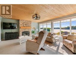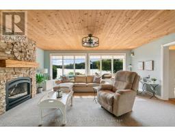 Welcome to your dream waterfront retreat! Spacious, light-filled bungalow with an open-concept layout designed for modern living and entertaining. Immaculate interior with high-quality finishes, cozy living areas, and large windows framing breathtaking water views. Heated floors in both bathrooms. Oversized detached garage offers secure storage for vehicles, water toys, or workshop space. Fully finished bunkie ideal for guests, home office, or studio, private and insulated for year-round use. Property is being sold with a custom swim spa for year-round relaxation and low-impact fitness as well as a Scandinavian-style outdoor sauna overlooking the water - your personal wellness retreat. Steel roofing on all structures for long-term durability and minimal maintenance . Generac whole-home generator ensures peace of mind and uninterrupted comfort. Enjoy direct access to the water from your private dock ideal for boating, kayaking, swimming, or simply relaxing by the shore. Whether you're soaking in the swim spa under the stars, enjoying coffee on the dock at sunrise, or hosting guests in the private bunkie, this property delivers the ultimate waterfront lifestyle with every amenity in place. (id:50886)