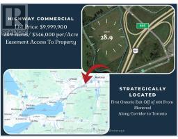 An exceptional opportunity 28.9 acres Highway Commercial Zoning, First Ontario Exit on 401 hwy when travelling from Quebec. Please review multimedia brochure for potential uses. Great visibility. Note the Per acreage Price, this is an exceptional package being offered for the right buyer. Please Allow 48 Hour Irrevocable On All Offers. VTB on a portion possible, Terms TBD Click Multi Media Button To View Sales Brochure For This Strategically Located Property. (id:50886)