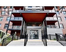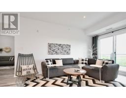 Stunning and modern 1-bedroom + den penthouse suite in the sought-after "Gallery" community. This top-floor unit offers true open-concept living with no neighbours above, backing onto serene trees for added privacy. Enjoy an oversized terrace with beautiful panoramic views stretching all the way to the lake perfect for morning coffee or evening sunsets.-Featuring stainless steel appliances, stylish flooring, and a sleek glass walk-in shower. The spacious den (12 ft x 7'6") provides endless flexibility for a home office, studio, or guest space. Includes 1 underground parking space. Located in "The Louvre," the final building in this fine-art inspired development, just minutes to Hwy 400, shopping, parks, and all amenities. A rare opportunity to live in one of Barrie's most desirable condo communities. (id:50886)