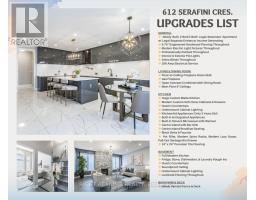 Welcome to 612 Serafini Crescent! Your dream home with 6 bedrooms & 6 bathrooms, with over 4,100 sq. ft. of living space, meticulously renovated with over $300K in upgrades giving you the best luxury living experience! Indulge in the huge show stopping custom-made kitchen including top-of-the-line built-in KitchenAid appliances just 3 years old, integrated cooktop, custom cabinetry, sleek quartz countertops, modern Lazy Susan, modern spice racks, pot filler, cabinets & drawers with soft-close, huge kitchen island with bar sink and breakfast seating overhang, tile flooring, and more. Step onto 6.75" engineered hardwood flooring that spans the entire house, complemented by stunning 24" x 24" porcelain tile flooring in key areas. The heart of the home boasts a custom floor-to-ceiling stone wall fireplace, creating a cozy ambiance. From pot lights that grace both the interior and exterior, to the allure of upgraded ELFs including chandeliers, every corner radiates warmth and sophistication. Secluded private office space with high ceilings perfect for getting work done. Encounter seamless transitions as glass railings elegantly guide you upstairs where the family room beckons with a soaring open space. A Primary Bedroom then awaits with a 5-piece spa-like bathroom adorned with premiums fixtures and finishes. His/Her closets and custom wood frame for the TV and fireplace only add to this Primary space. From sinks and faucets to vanities and mirrors, no detail has been spared in creating sanctuaries of relaxation. Unlock the potential of your home with a newly built 1,020 sq. ft. basement, boasting a legal 2-bed, 2-bath apartment with separate entrance and soundproof ceiling. It's primed for rental income or multi-generational living. Simply awaiting city's final inspection. Equipped with 200 amp service! Professionally painted both inside and out, along with deck and fence in 2024, this is more than just a house, it's a haven of luxury and comfort. Your dream home awai (id:50886)