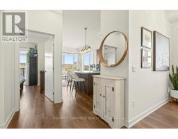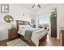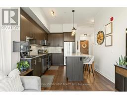 Unique opportunity to own a gorgeous one bedroom + den top floor corner suite at sought-after Affinity in Aldershot! Floor to ceiling windows with stunning views of the escarpment and beyond! Upgraded kitchen with stainless steel appliances, quartz countertop, island, subway tile backsplash and under-cabinet lighting. Open and extremely bright living space with 10' ceilings, upgraded wide plank flooring, upgraded lighting, in-suite laundry, 3-piece bathroom, walkout to a private balcony and a cozy den perfect for a home office. The spacious bedroom features a second walkout to the balcony and a large closet with built-ins and motion sensor lighting. Just steps to the GO station, RBG, marina, library, schools and Burlington Golf & Country Club. One underground parking space and one storage locker on unit level. Building amenities include an electric car charging station, rooftop terrace with BBQs, gym, yoga room, party room and loads of visitor parking! (id:50886)