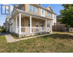 Facing Lamprey park is this this amazing sun-filled residence exuding timeless charm with its inviting wraparound porch and showcases thoughtful upgrades throughout.The main level offers a seamless open-concept design with 9-foot ceilings and gleaming hardwood floors, creating an effortless flow between the elegant dining area and the spacious living room, complete with a cozy gas fireplace. The chef-inspired kitchen is a true showpiece, featuring stainless steel appliances, a sleek hood fan, quartz countertops, a large island with breakfast bar, and refined lighting with pot lights throughout. Upstairs, rich hardwood floors and a striking staircase lead to a versatile loft with soaring cathedral ceilings an ideal retreat for a home office or lounge. The serene primary suite boasts a walk-in closet and a spa-like 5-piece ensuite, complete with double granite vanities, a freestanding soaker tub, and a glass-enclosed shower. Two additional bedrooms, a stylish full bath, and a convenient laundry room complete the upper level. Outside, the PVC-fenced backyard offers privacy and low-maintenance enjoyment.This exceptional property is just steps from River Mist Park, within walking distance to top-rated schools, and only minutes from the Minto Recreation Centre, shopping, dining, and public transit. A perfect balance of elegance, comfort, and conveniencethis home truly has it all. ** This is a linked property.** (id:50886)