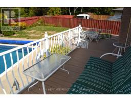 Nestled in a mature subdivision located in the northwest area of Oshawa. This property features a pie-shaped lot and is located a short distance from Durham College/Trent University, shopping, public transit, recreation and parks. This well-maintained four-level side-split includes 3 washrooms a 6-piece, 3-piece and 2-piece. Property also includes a two-tier deck 14 ft. X 6 ft. and 16 ft. X 14 ft. The kitchen offers a walkout and second walkout from the family room with fireplace. The large heated inground swimming pool, measuring 18 ft. X 36 ft., has a five year old liner and pool cover. Private backyard contains a shed for pool equipment and ample space remains for a playground. This home is a must-see to appreciate and is situated on a quiet cul-de-sac street lined with mature trees and sidewalks. Presently vacant and allows for a quick closing. (id:50886)