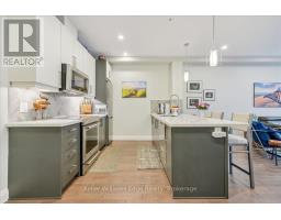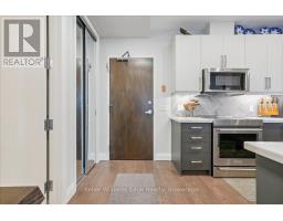 Because builder grade is not for you! This VERY New York inspired suite is at the Royal Connaught. This unit was fully customized and upgraded well beyond what the builder offered. Designed for multifunction spaces, and every inch of space for storage was utilized so beautifully. Real Hardwood, upgraded Granite counters, pull outs and closet organizers galore to maximize usable space. Even the front hall closet has a pantry stack now. Kitchen backsplash is a tastefull and timeless herringbone pattern, stainless appliances and virtually every cabinet has custom pull out shelves or drawers and organizers. An upgraded stainless sink without the stain inducing 90 degree corners, upgraded restaurant style faucet too. The washer and dryer are elite condensing units that have full size interiors with smaller exteriors to maximize laundry room space. They are willing to replace them for regular ones and take these with them. Parking is deeded for underground but currently owners have a surface space until the next phase is completed. The amenities are incredible. This lobby speaks to pride of ownership and is like coming home to a movie set every day. it's historic, very New York and anything but run of the mill. Impressive to guests and you! Gorgeous and upscale. The rooftop outdoor patio is private and the hub of the building's social activities including BBQ's when you can entertain guests too. The mezzanine gym is a dream to work out in. Great equipment. Theatre, Just so many extras. A place to call home for those with a discerning eye & lifestyle in Hamilton. (id:50886)