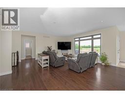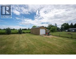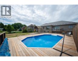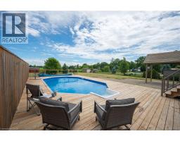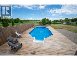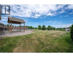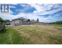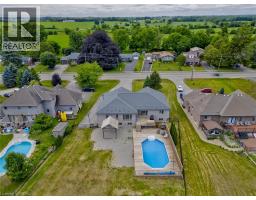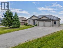Nestled in the desirable Mount Pleasant community of Brantford, this beautiful 0.62-acre bungalow offers over 3500 SF of finished living space, the perfect blend of comfort, style, and functionality. With an expansive driveway offering space for 8+ cars and a 2.5-car attached garage, this home is ideal for family living and entertaining. Upon entering, the welcoming foyer with double doors leads to a spacious, light filled, open-concept living and kitchen area, complete with hardwood and travertine flooring. The large eat-in kitchen features a generous island with granite countertops and opens onto the backyard oasis, where you can relax on the elevated deck with a natural gas BBQ hookup, overlooking the the on-ground pool and farmers fields, or enjoy the gazebo and separate drive shed. The formal dining room with California shutters creates an elegant atmosphere, while the primary suite offers a large walk-in closet with custom built-ins and a 4-piece ensuite with dual vanities and a walk-in shower. Two additional bedrooms and another 4-piece bath complete the main floor, along with a laundry and mudroom with access to the garage. The lower level boasts high ceilings and above-grade windows, providing plenty of natural light and in-law suite potential. It features a 4th bedroom, a modern 3-piece bath with a walk-in shower, a dry bar, a den/office, and a cozy family room with a gas fireplace. An unfinished room offers future possibilities for a 5th bedroom or second kitchen. Located near Mt. Pleasant Nature Park, community center, Parks and Tennis/Pickleball courts and the Lake Erie Northern Electric Railway Trail, you'll have access to plenty of outdoor amenities. It's also within walking distance to Mt. Pleasant school, making it perfect for families. Book your showing today! (id:50886)