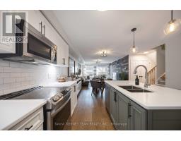 Rarely offered 4+2 bedroom, 4 full bath freehold townhome in a sought-after West End Peterborough community. This unique property offers exceptional multi-generational living potential with a fully finished basement featuring a kitchenette (outlet for stove) OR an upper-level retreat with 2 bedrooms, 4pc bath and family room. A true unicorn! The sun-filled open concept main floor features luxury vinyl plank flooring, neutral décor, an inviting family room with feature wall and walk-out to the entertainers deck and fully fenced backyard. The upgraded kitchen includes quartz countertops, centre island with breakfast bar, pendant lighting, subway tile backsplash, stainless steel appliances and a generous dining area. Main floor also offers a laundry room, 4pc bath and 2 spacious bedrooms including a primary with 3pc ensuite and walk-in closet. The upper level provides an additional 2 bedrooms, 4pc bath and separate family room-ideal for teens, guests or extended family. The fully finished basement includes 2 bedrooms, 4pc bath, a large rec room, above-grade windows and convenient kitchenette area. Parking for 4. Steps to schools including Fleming College, parks, transit and major amenities. Perfect for large families, investors or multi-generational living with over 2,750 sqft of upgraded living space! (id:50886)