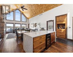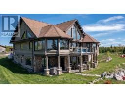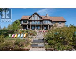 Experience ultimate privacy and breathtaking lake views from this exceptional waterfront estate, featuring 521 feet of pristine shoreline and west-facing exposure for year-round sunsets over a quiet, serene bay. Perfectly tucked away from boat traffic and road noise, yet ideally located for endless adventures on Lake Manitouwabing.This luxurious retreat offers 3+2 spacious bedrooms, including a stunning 27' x 15' waterfront King Suite, and three elegant bathrooms with spa-inspired features such as a double shower and soaking tub. The open-concept living space combines comfort and style with vaulted wood ceilings, hand-scraped floors, and striking floor-to-ceiling stone fireplaces.A chef's kitchen with high-end stainless steel appliances makes entertaining effortless. Step outside to a waterfront granite patio, fire pit, and deep-water dock-ideal for swimming, boating, and soaking in the natural beauty. Relax in the hot tub or make use of the massive 2,000 sq. ft. detached garage/workshop for all your recreational and storage needs.A rare offering, this property delivers the perfect balance of luxury, tranquility, and adventure on one of the area's most coveted lakes. (id:50886)