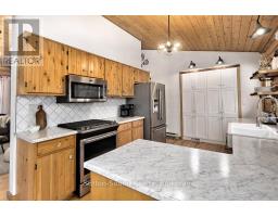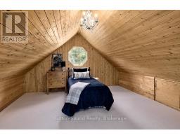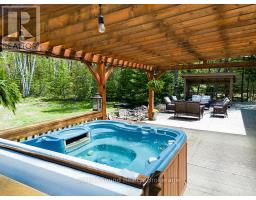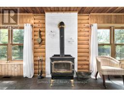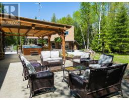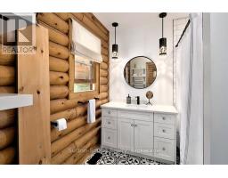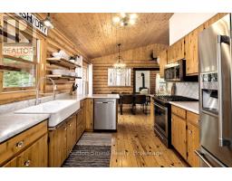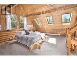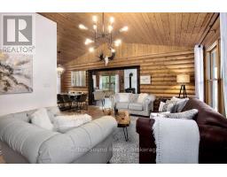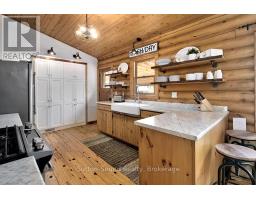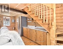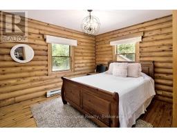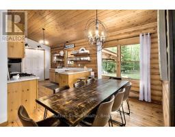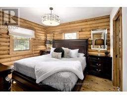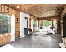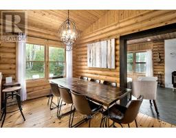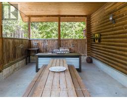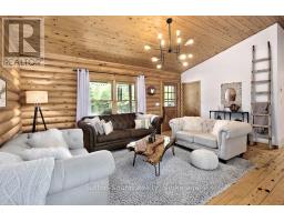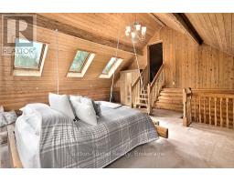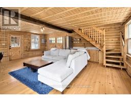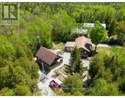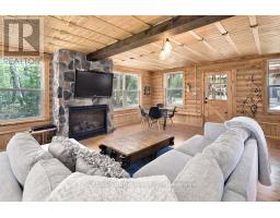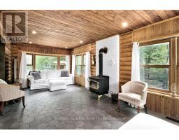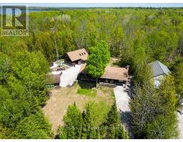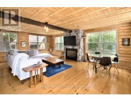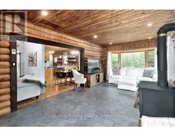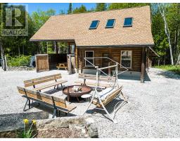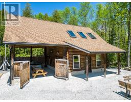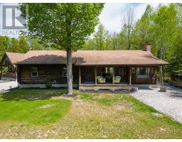 BOAT LAKE FAMILY RETREAT! This incredible property offers a main house, 2 story bunkie, smaller bunkie with loft, an outdoor covered bar, fire pit and outdoor numerous seating areas. The Conservation Land backdrop (46 Acres) creates a quiet and secluded retreat for the family. The log home blends beautifully with it's natural environment with an interior show casing modern design and finishes. (Professionally designed) This bungalow features 3 bed 2 baths, living room, dining room, updated kitchen, family room with f/p and exudes warmth and character only a log home brings. The Rec room has heated floors and an airtight wood stove. The secondary home/bunkie is perfect for visits from family and friends with main floor living room with f/p, kitchen and 2 bedrooms upstairs. Entertain in the covered bar, enjoy the fire pit or relax in the hot tub. Only 30 second walk to Boat Lake for endless summer days on the water. Boat Lake Cottagers Association owns water access and roads. See our video for a true reflection of this unique property. (id:50886)