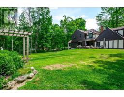 If you've ever imagined life surrounded by trees, where home feels like a peaceful escape, this is it. Welcome to 642 Dinsdale. This stately Tudor-style home is tucked into one of Peterborough County's finest neighbourhoods, Bridgenorth Estates, where homes are rarely offered, and lifestyle is everything. Set on just over 2 acres, the property is surrounded by mature trees, beautifully landscaped grounds, and wide open sky, offering space to explore, unwind, and enjoy every season outdoors. The backyard is a retreat of its own, featuring a charming arbour surrounded by gardens and stepping stones, plus a large patio perfect for outdoor dining or quiet mornings. There's room for kids to run free, and space for your dog to explore and play among the trees. Inside, the main level offers thoughtful design and natural light throughout; including a grand foyer, two separate living areas (each with their own gas fireplace), a formal dining room, kitchen, powder room, and a mudroom/laundry combo. One of the standout features is a separate room with its own entrance; ideal for a private home office, studio, or work-from-home setup. Upstairs, you'll find four bedrooms including a spacious primary with walk-in closet and ensuite, a second full bathroom, and an additional office or flex space. The lower level includes abundant storage, a den/bedroom, and a walk-out rec room with easy access to the backyard. Just minutes to Chemong Lake, perfect for boating, paddling, fishing, or simply soaking in the view, only minutes to retail essentials and located within the catchment zone of great schools; its easy to see why homes in this neighbourhood don't come up often. Welcome home to Bridgenorth Estates. (id:50886)