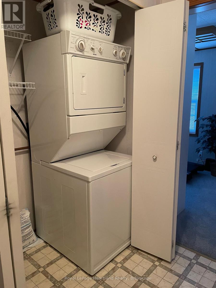 Look what has come on the market! A spacious 2+ bedroom, 2 bathroom year round Northlander home is now being offered for sale at 65 Cherokee Lane in the desirable and highly sought after land lease adult lifestyle lakefront community known as Meneset on the Lake. This well maintained, super functional interior floor plan consists of an open concept kitchen with loads of cabinetry, dining room with space for a sideboard and cozy yet elegant living room with a natural gas fireplace. Privacy is ensured at the back of the home where you will find the primary bedroom with lots of closet space and a 3 piece ensuite bathroom. Guests may enjoy their own space with the main 4 piece bathroom and bedroom footsteps apart. The new Buyer will enjoy the additional sitting room or could easily be used as a 3rd bedroom with backyard access. Take note of all the storage space across from the hallway laundry closet, water softener (rented) and owned hot water heater. The home is heated with a new forced air natural gas furnace and central air conditioning (2021). In 2015 all carpet was replaced throughout, new shingles/roof, new water heater purchased and pipes under the home have been insulated. Exterior features include a double paved driveway, beautiful mature lot, partially covered front entrance deck and private garden/patio area with a shed to store off season items or make into your workshop. This is the perfect home for Buyers wanting lots of living space, lakeside living and close to the Town of Goderich. Meneset on the Lake is a lifestyle community with an active clubhouse, drive down immaculate beach, paved streets, garden plots and outdoor storage. When lifestyle, simplicity and an incredible private drive-able beach are your goals, consider this home as your next purchase! (id:50886)